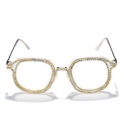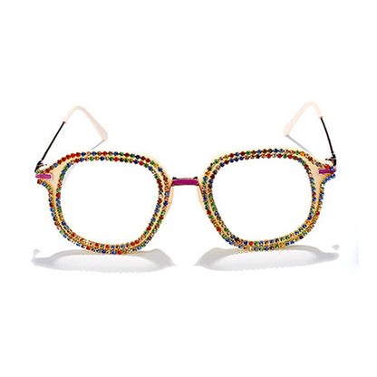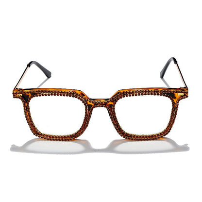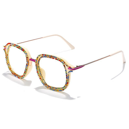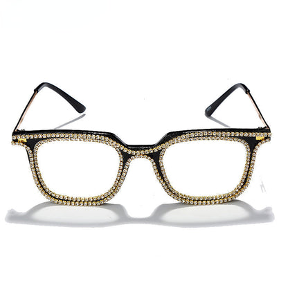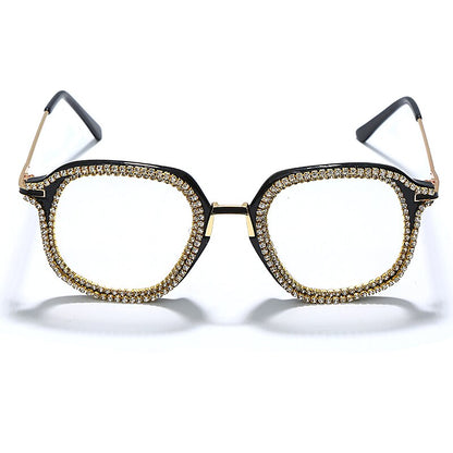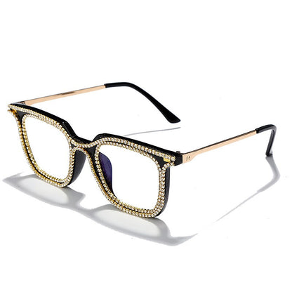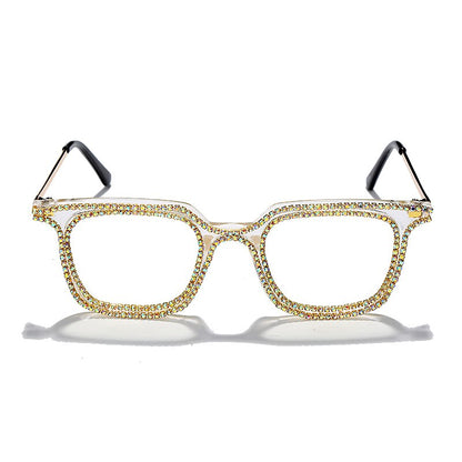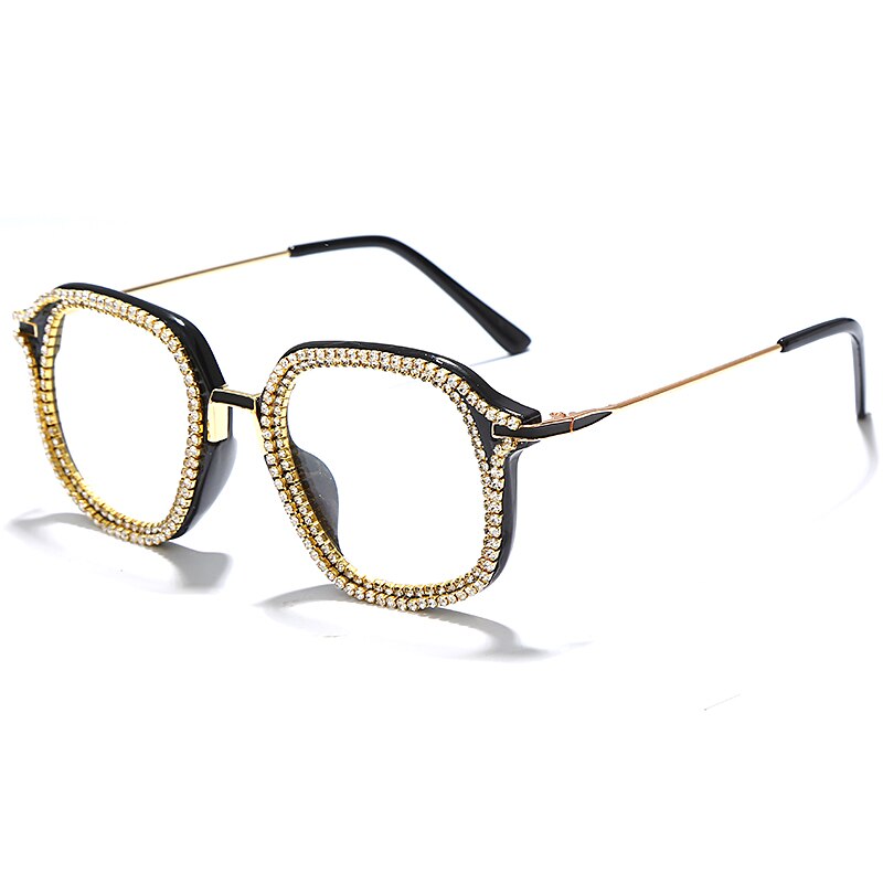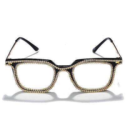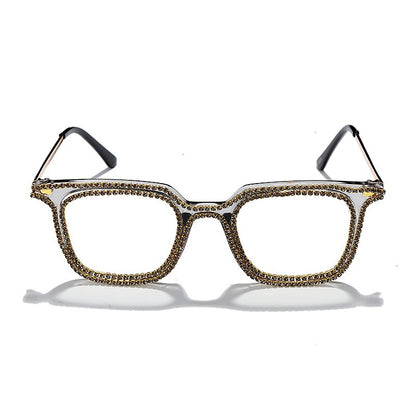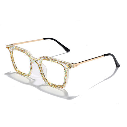 Luxury Rhinestone Frame Anti Blue Light Glasses Vintage Diamond Square Oversize Clear Lens Eyeglasses Optical Spectacle Frame